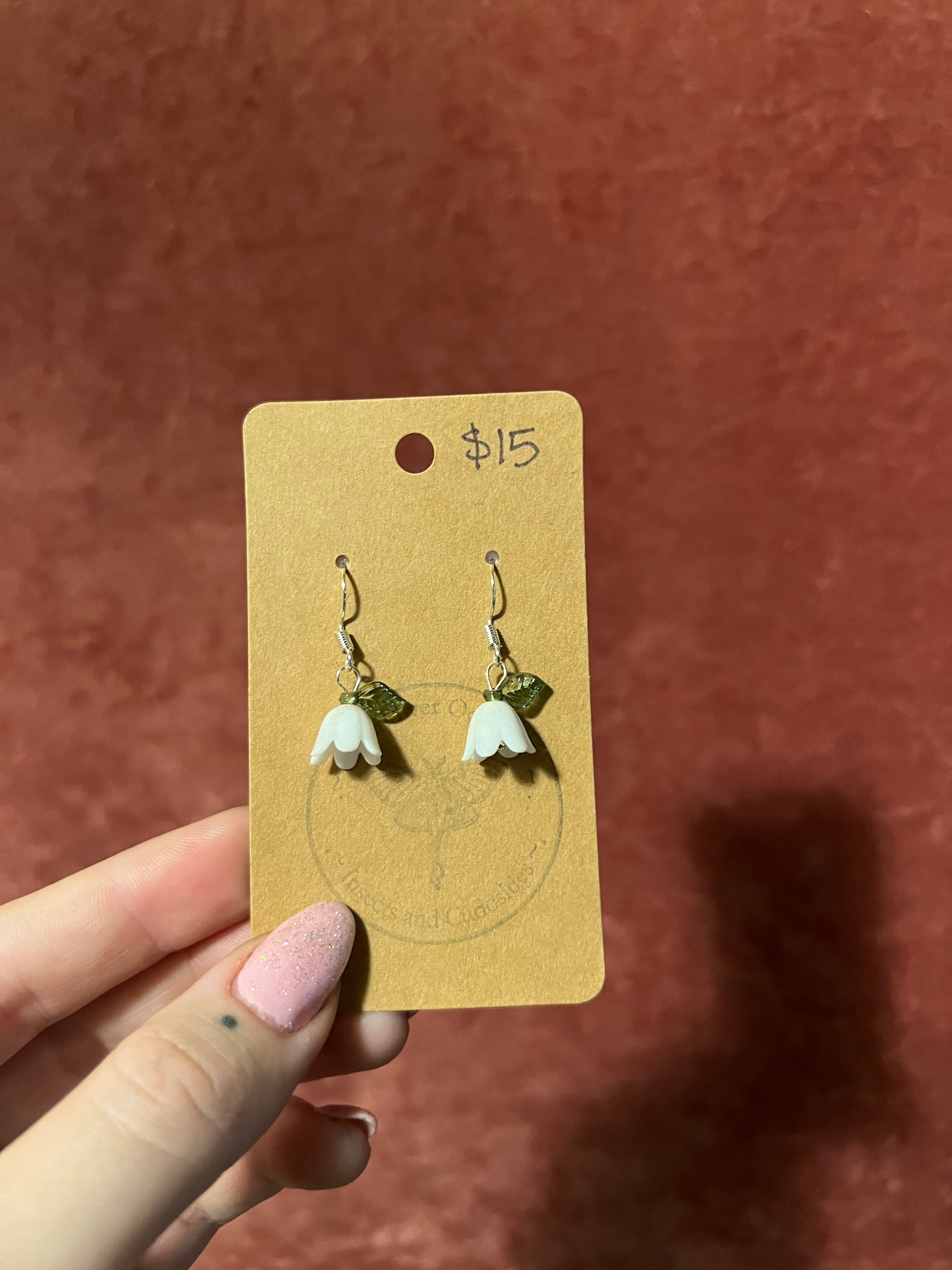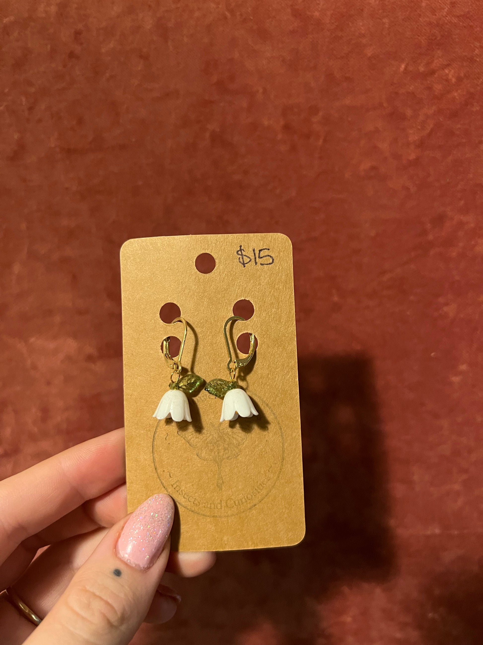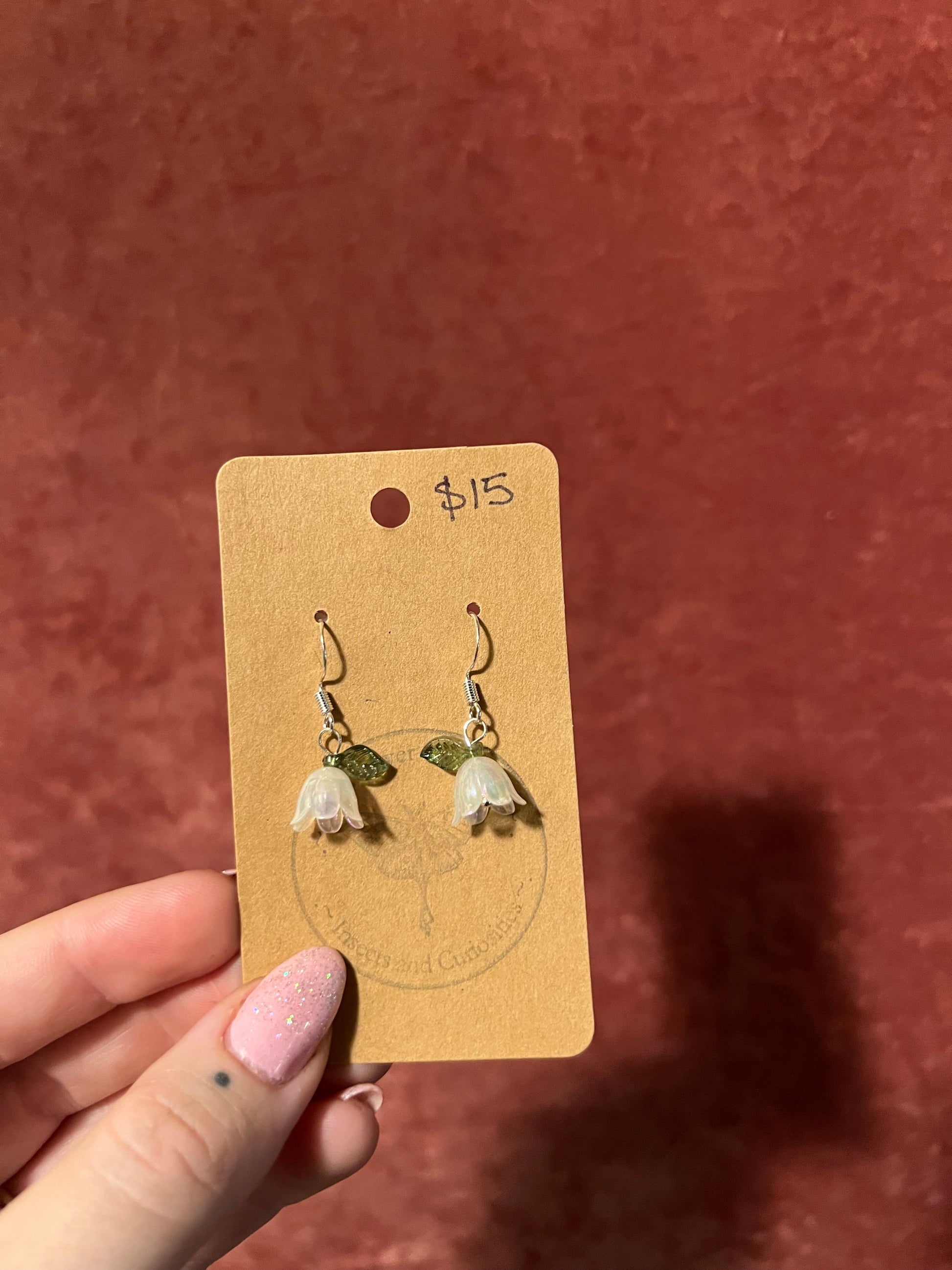 A variety of sterling silver and brass earrings with glass-like acrylic charms