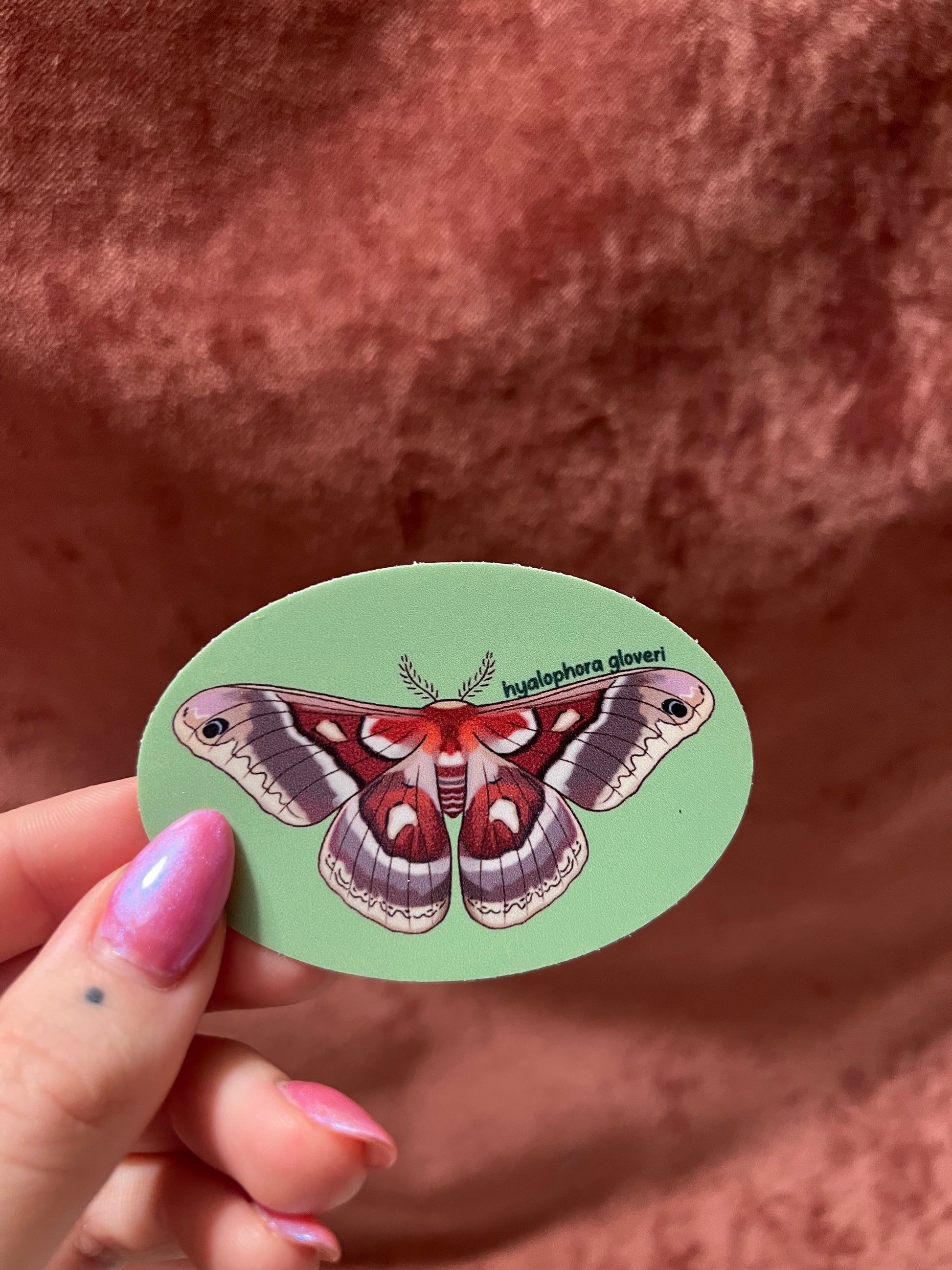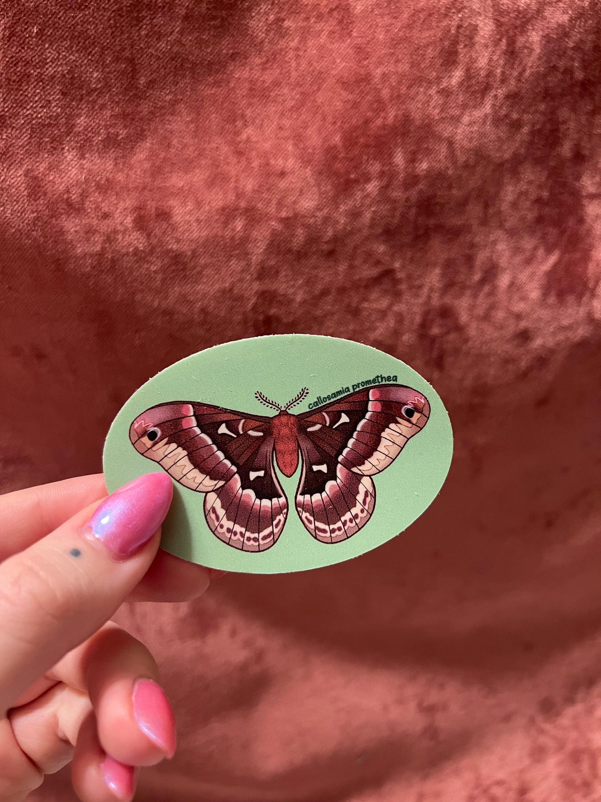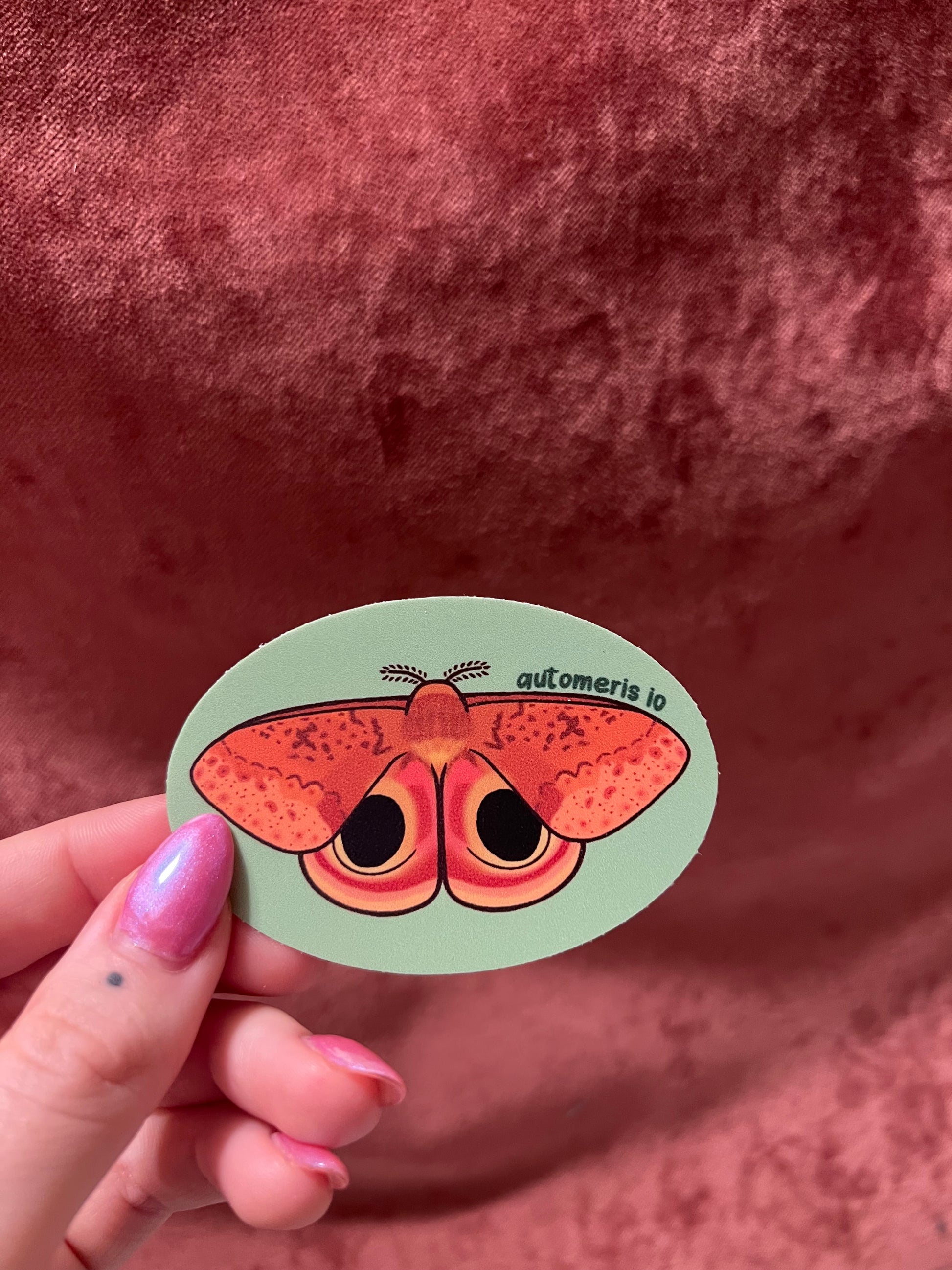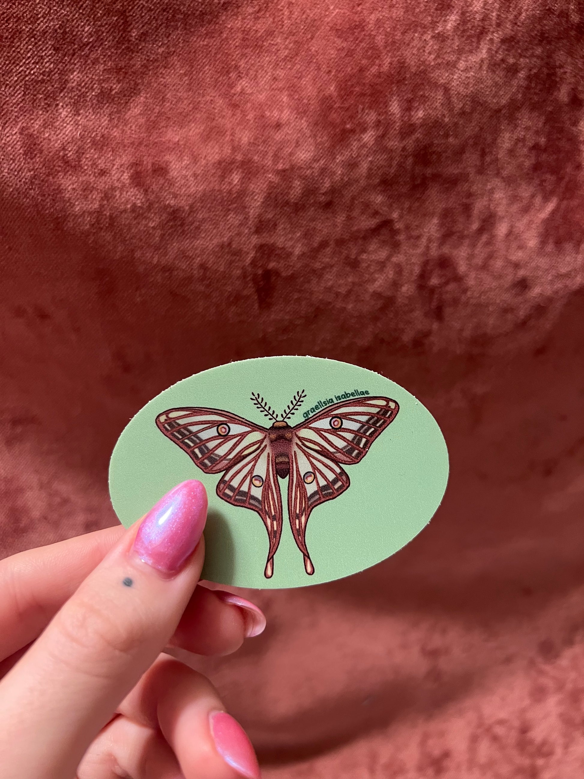 Hand drawn by me, moth stickers! These are 3” wide oval vinyl matte finish stickers